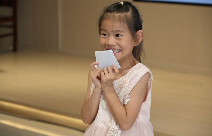 最后,在“与情绪共处”的环节,葛欣悦老师带领学生进行冥想练习。孩子们一边深呼吸,一边将注意力放在身体的各个部位上,学习如何用身体的节奏安抚情绪的波动,同学们也在这个过程中慢慢感受到内心的平静。