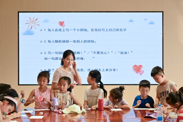 随后进入“直面情绪”环节,在“烦恼帮帮乐”游戏中,孩子们将自己的小烦恼写在纸上,再在其他同学的烦恼上留言,为他们送上一句暖心的鼓励或建议。烦恼从“我考试没考好”到“我和朋友吵架了”,孩子们用最真诚的话语回应、鼓励彼此。