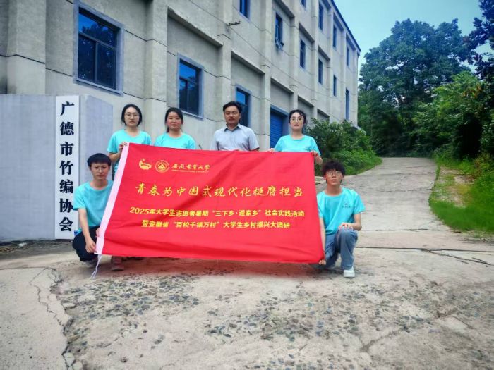 为响应国家乡村振兴战略,践行“以竹代塑”的环保理念。7月15日,安徽农业大学材料与化学学院“竹基新材·智赋乡芯”实践团赴宣城市广德县四合乡永彬竹木工艺品厂开展为期三天的暑期“三下乡”社会实践活动。团队通过实地调研、产业访谈等形式,探索传统竹编技艺的创新发展路径,为乡村振兴注入青春活力。