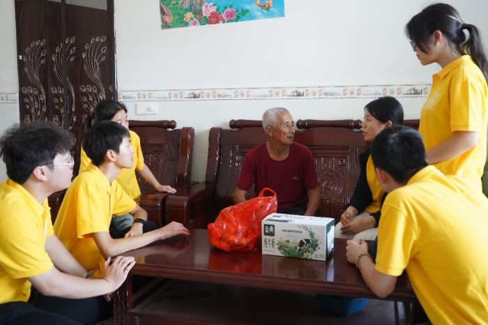 离开敬老院,实践团成员拎着提前备好的牛奶、水果等慰问品,沿着蜿蜒的乡间小路来到宝峰镇另一处民居,拜访有着四十余年党龄的老党员。老党员结合自身经历与新一代党员陈佳慧,谈论自己当年的入党初心和奋斗历程。其他的成员们围坐在老人身边的长凳上,安静地聆听那段跨越半个世纪的红色记忆。老党员饱含深情的话语,让成员们深刻感受到老一辈共产党人坚定的理想信念与为人民服务的崇高精神。成员们也表示将以老党员为榜样,铭记老党员“为人民服务,不为己谋利”的嘱托,将红色精神内化于心,外化于行。