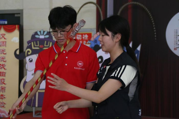 图为实践团成员体验汉调桄桄文化。李星慧摄