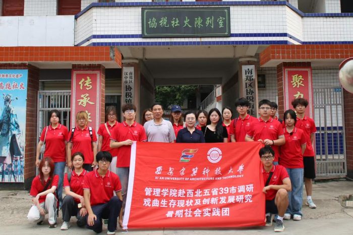 为深入贯彻习近平新时代中国特色社会主义思想,扎实落实党的二十大精神,牢牢把握新时代新征程对青年一代的使命召唤,响应共青团中央关于开展全国大学生暑期“三下乡”社会实践活动的战略部署与时代号召,西安建筑科技大学管理学院赴西北五省39市调研戏曲生存现状及创新发展研究暑期社会实践团于2025年7月18日赴汉中市南郑区参观协税镇社火文化站及汉调桄桄传承发展中心。