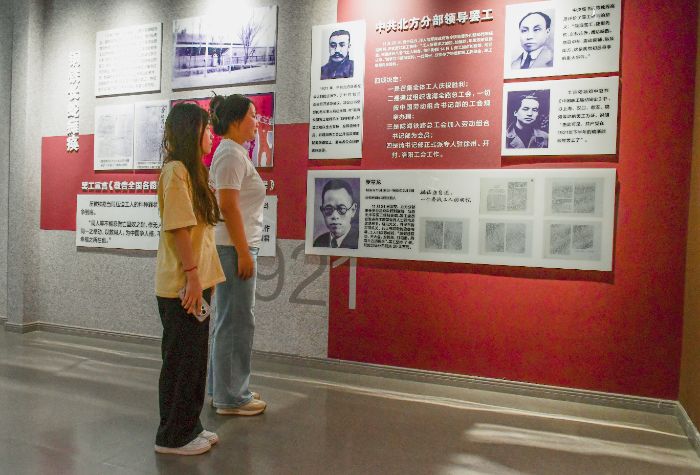 图为实践团成员学习工人运动的精神 殷子茜通讯员摄