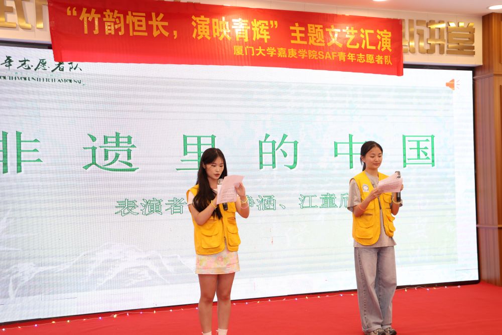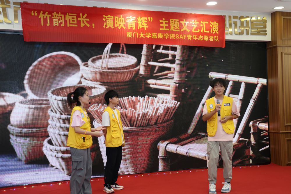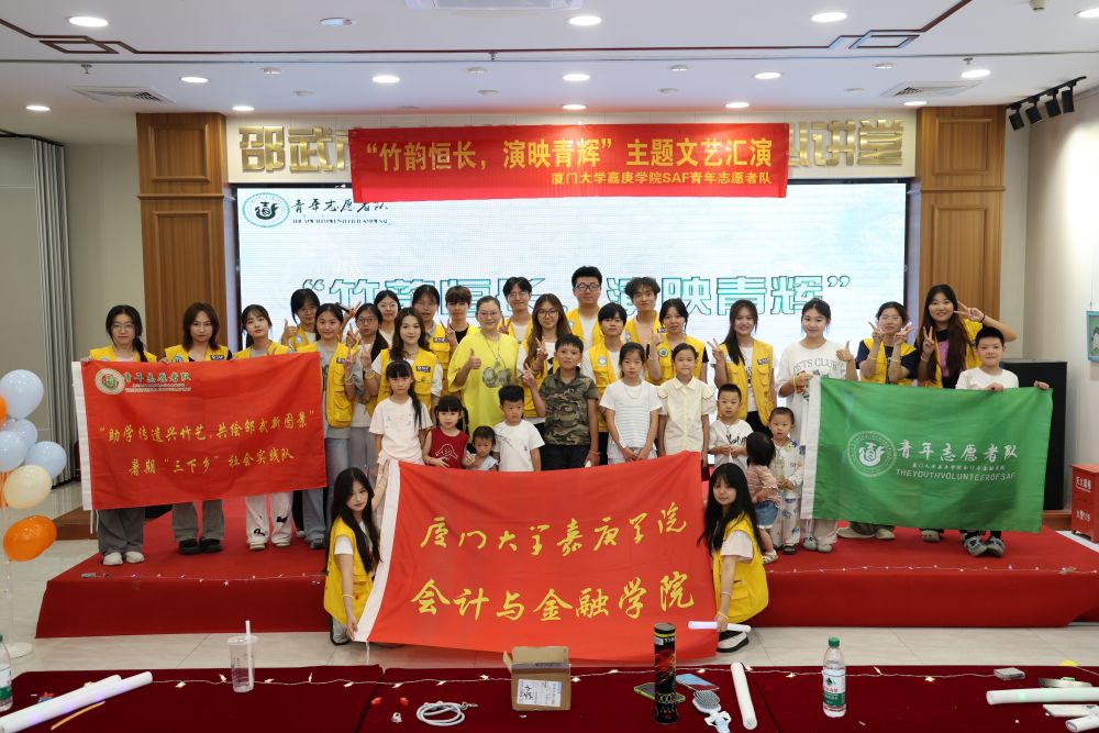 【厦门大学嘉庚学院7月27日讯】为响应国家关于全面推进乡村振兴、繁荣发展乡村文化的号召,2025年7月26日,厦门大学嘉庚学院会计与金融学院“助学传遗兴竹艺,共绘邵武新图景”实践队走进邵武市文化馆,精心组织并呈现了主题为“竹韵恒长,演映青辉”的文艺汇演。实践队队员们以青春热情与艺术才华,给当地居民带来了一场形式多样、精彩纷呈的文艺表演,生动展现了青年学子服务乡村、奉献社会的精神风貌,为乡村文化振兴注入青春动能。