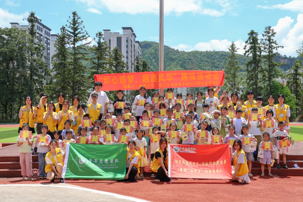 【厦门大学嘉庚学院7月27日讯】为全面落实“体育强国”战略部署,深入践行“体育是提高人民健康水平的重要途径,也是实现中国梦的重要内容”的核心精神,厦门大学嘉庚学院会计与金融学院“助学传遗兴竹艺,共绘邵武新图景”实践队于2025年7月27日在福建省南平市邵武市八一希望小学举办“炽心追梦,趣逐风华”主题趣味运动会。本次活动通过寓教于乐的创新形式诠释体育育人内涵,同时让小朋友们在趣味竞技中感知体魄强健的重要性,领略运动魅力,与实践队队员们共同开启了一场协作、智慧与欢笑的成长之旅。
