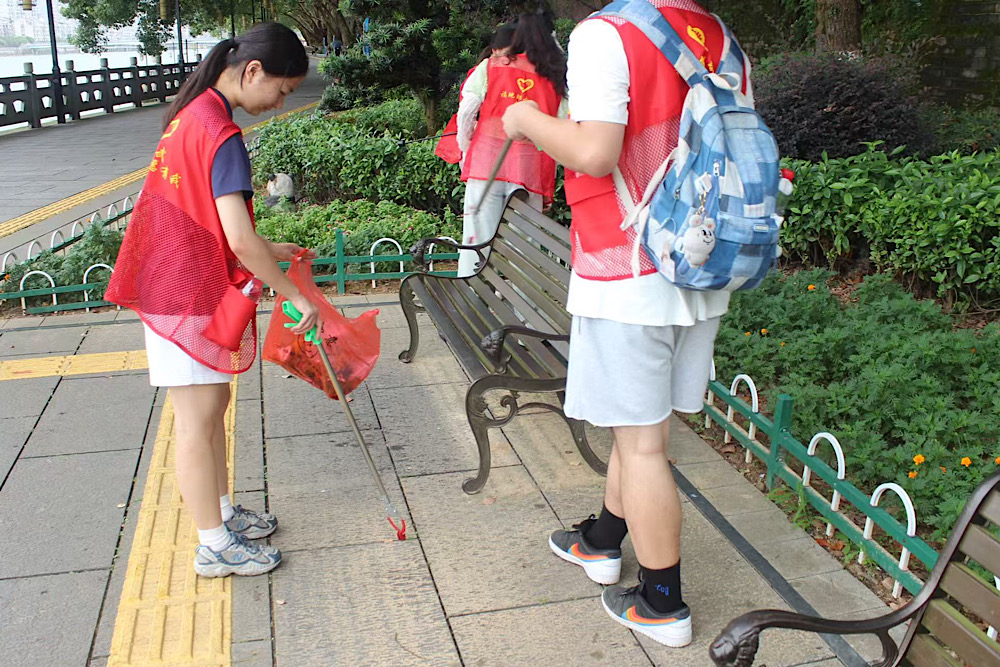 守护碧水,河段焕新——街道清扫 为营造整洁、舒适的居住环境,提升居民环保意识,实践队于上午9时整前往邵武市富屯溪河段开展了环境卫生清扫活动,与当地“一家亲”志愿者团队合作,用实际行动为社区“美颜”,进一步擦亮街道环境“底色”,提升街道文明“成色”。