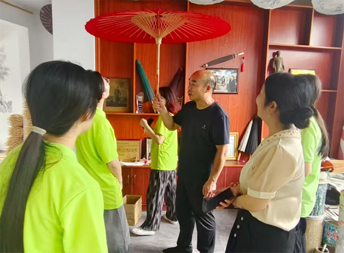青竹削成骨,皮纸糊成面,桐油浸成魂。一柄石鼓油纸伞的诞生,藏着82道工序的光阴打磨。7月12日下午,湘潭石鼓镇兴旺村的宇昌工艺伞业厂里,周汉宇正低头端详新糊的伞面,指尖抚过纸面的纹路,对我们这支"伞亮乡途"实践团的到访浑然不觉。作为湖南工商大学的暑期实践队伍,我们专程踏入这座省级非遗的核心阵地,想解开油纸伞下藏着的文化密码与致富玄机。