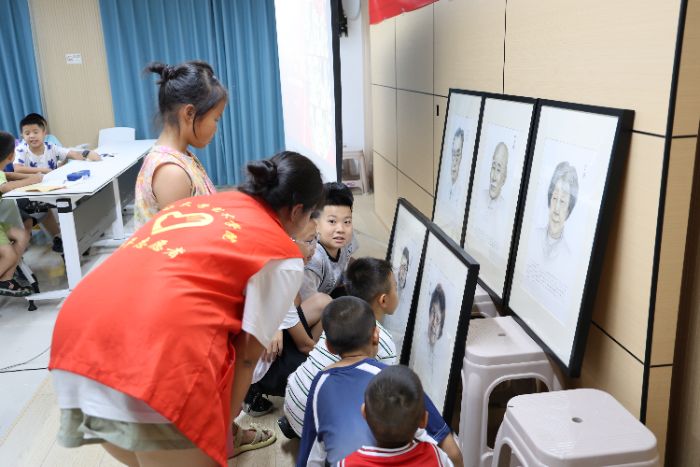 “画说教育家精神”进课堂活动,为非遗美育注入思想内涵。实践队员发挥美术专业优势,出征前绘制蔡元培、陶行知、张桂梅等中外著名教育家经典肖像并带进丫口和金斗山社区课堂。课堂上,志愿者围绕画像,讲述教育家奉献精神、教育情怀、实践理念和创新勇气。像“陶行知爷爷说‘生活即教育’,张桂梅老师点亮大山女孩梦想”这样的生动讲述,让画像中教育家目光变得温暖且充满力量。孩子们仰脸专注凝视画像,仿佛与伟大灵魂跨时空对话。