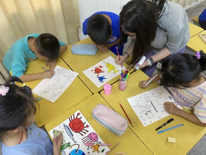 科技启蒙不止于组装,队员引导孩子围绕“长江大保护”创意绘画,孩子们用画笔描绘心中母亲河未来图景,如江豚嬉戏、生态廊道、新能源船舶等。科技模型启迪智慧,绿色绘画涵养情怀,在孩子心中种下守护长江、建设美丽中国的种子。
