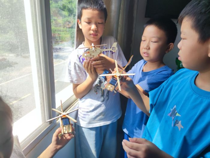 远安县河口乡,科技启蒙与环保教育分队为山区孩子带来科学与艺术交融体验。队员准备木质太阳能小车与小飞机模型材料包。课堂上,孩子们在实践队员指导下化身“小小工程师”,组装零件、连接电路。太阳能小车跑动、小飞机螺旋桨转动时,孩子们惊叹“太阳真能变成动力”。