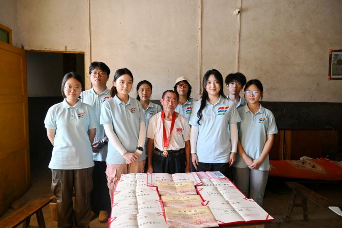 随后,李老小心翼翼地拿出他的荣誉证书,一本本证书堆积如山,摆满了四方桌。这些证书不仅是党和政府对他付出的高度认可,更是他一生为人民服务、为国家建设不懈奋斗的生动见证。尽管已近八旬高龄,却依然保持着每天准点观看新闻联播的习惯,时刻关注着国家大事。在交流中,他反复强调“重视人才”的重要性,殷切希望青年学子们能够扎实学习本领,早日投身到为人民服务的伟大事业中,为社会建设添砖加瓦,推动国家不断向前发展。