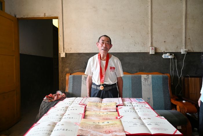 图为李子兴同志佩戴荣誉勋章 刘阳摄