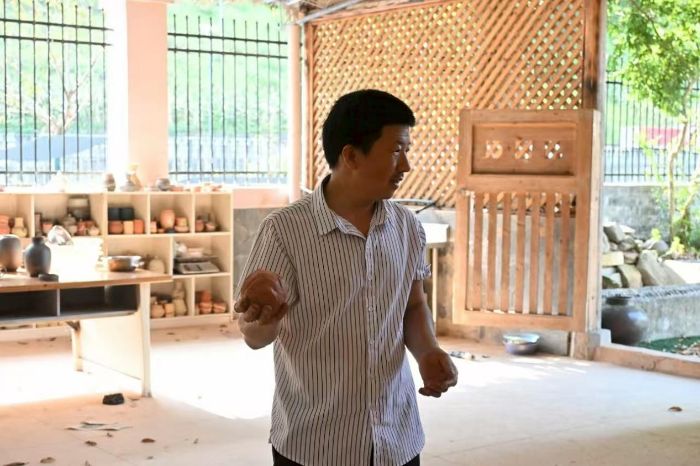 沧沟乡的土陶制作技艺是当地珍贵的非遗财富,一件件陶器在指尖流转间沉淀着岁月的印记与代代匠人的巧思。此次实践团特意来到位于沧沟乡中心小学校的土陶制作工坊,在土陶制作师傅——左昌林老师的带领下,探寻这门古老技艺背后的坚守与传承。