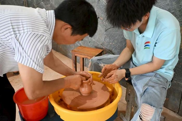 实践团与左老师聊起土陶的传承时,他感慨道:“这手艺靠的是慢工出细活,现在愿意静下心学的年轻人少了,但只要有人想学,我们都愿意教。”工坊里不时有附近村民和游客前来参观,实践团成员主动担任解说员,向大家讲述土陶的制作心得。