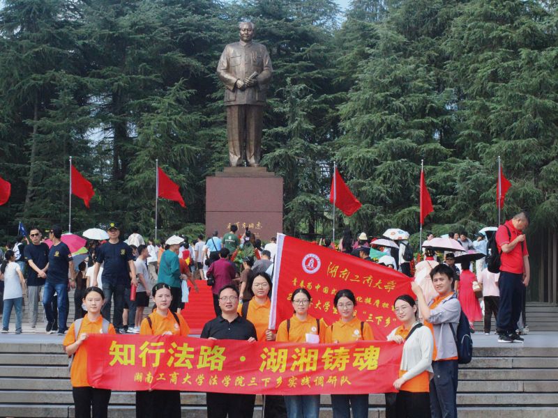 7月29日,湖南工商大学红法润青苗普法先锋队赴湖南韶山开展参观学习与红色教育实践活动。团队先后前往毛主席铜像广场、毛泽东同志纪念馆、毛泽东同志故居进行实地学习,录制讲解宣传视频,并走访韶山市司法局,了解当地红色法治文化建设情况,以此挖掘红色法治基因,传承革命精神。