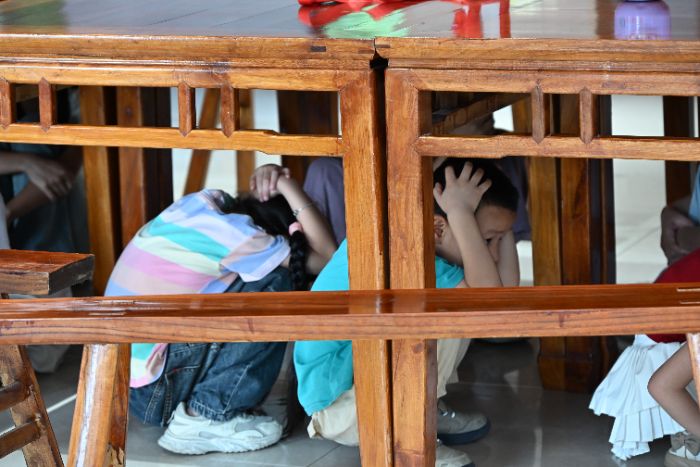 疏散演练练反应 紧急时刻保安全 为检验学习成果,支教团组织了火灾和地震紧急疏散演练。随着模拟警报声响起,青少年们在支教团成员的引导下,按照所学的疏散知识,迅速做出反应。演练结束后,支教团成员对演练情况进行了总结,指出了需要改进的地方,让大家进一步掌握了紧急疏散的要点。
