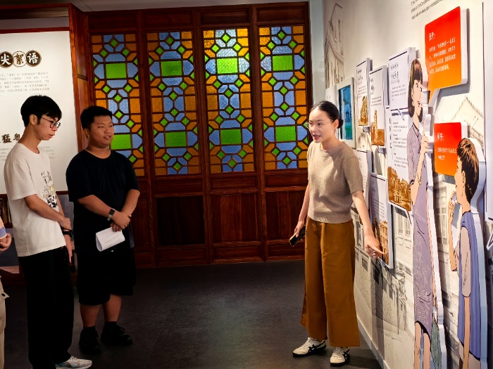 图为讲解老师为实践团成员介绍广府的近代建筑特色 黄德华供图