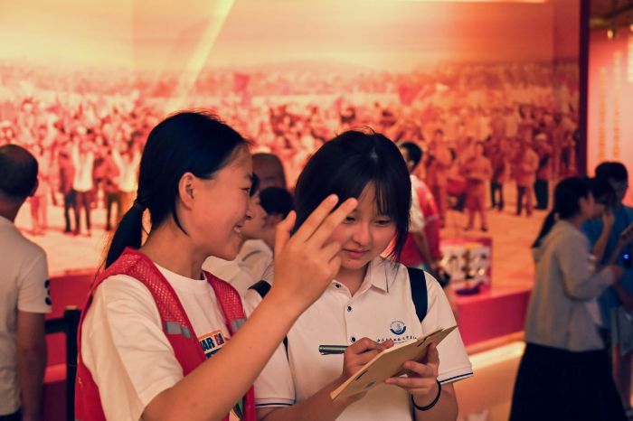 来到馆内“政治铸魂、服务抗战”展厅,“抗大旗帜、便插敌后”几个大字瞬间抓住所有人目光。讲解员动情地介绍道:“总校东迁时,学员们背着‘学习袋’穿梭战火,大路当课堂、影壁作书桌,在枪炮声里‘战斗中学习,学习中战斗’。硝烟虽已散去,但‘学习袋’承载的坚韧与信念,早已化作时代考题,等待我们这一代青年以智慧和汗水,在民族复兴的‘战场’上续写答卷。抗大的故事,是热血与信念浇筑的不朽丰碑。先辈们在民族大义前以渺小之躯,扛起千钧重担的抗大精神,光照千秋,提醒着每一个后来人,不忘历史,不负使命,让抗大精神在新时代绽放更耀眼的光。