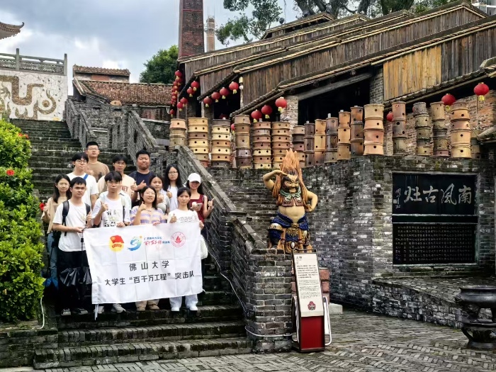 大学生网报7月31日讯(通讯员梁振宇)7月1日,在中国共产党成立104周年之际,佛山大学物理与光电工程学院党辉乡梦实践团响应“百千万工程”号召,赴国家级非物质文化遗产保护单位南风古灶开展实践活动。实践团成员通过走访古窑遗址、探访陶艺工坊、对话游客匠人、参与非遗体验等方式,沉浸式感受石湾陶艺的千年魅力,在实践中深化对传统文化传承与创新的理解。