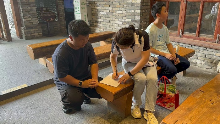 “阿姨,您是第一次来南风古灶吗?是什么吸引您来这里?”实践团成员分成若干小组,带着提前设计的调研问卷与游客展开交流。来自广州的陈女士带着孩子正在观摩学习陶塑,她告诉同学们:“想让孩子从小接触传统文化,石湾陶艺既有历史感又有趣味性,比在课本里学更生动。”另一个小组去采访来自广州的阿伯,他正在观看拉坯,他告诉同学们:“我自小就喜欢陶艺文化,我时常来这里欣赏陶艺制作。