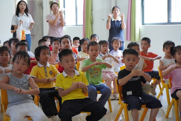 图为幼儿园小朋友们做手指操,由党辉乡梦实践团成员张楚涵供图