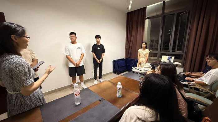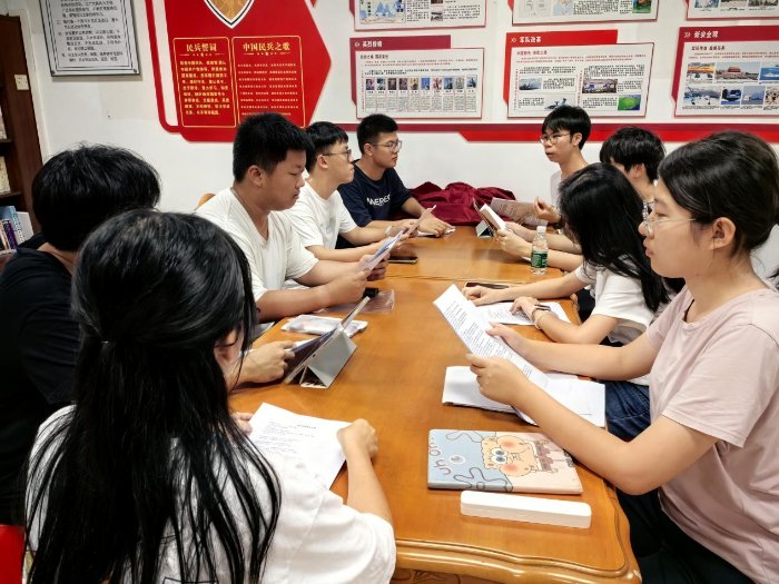 图为党辉乡梦实践团成员讨论咏春调研内容,由成员黄德华供图