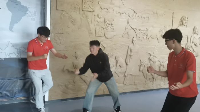 访谈之余,陈义老师亲自示范,悉心指导实践团成员学习舞狮技巧。从狮头的起势、摆幅到与狮身的配合韵律,每一个动作细节的点拨,都让我们在实践中更深刻地体会到舞狮艺术的精妙与厚重。这不仅是技艺的传递,更是一份文化责任的接续,让实践团成员对传统文化的生命力有了更为真切的感知。