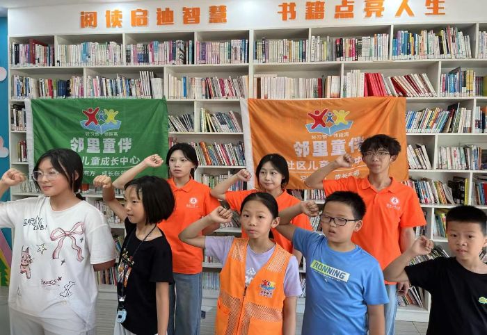 (图为队员与孩子们一同宣誓 翟丹红摄)