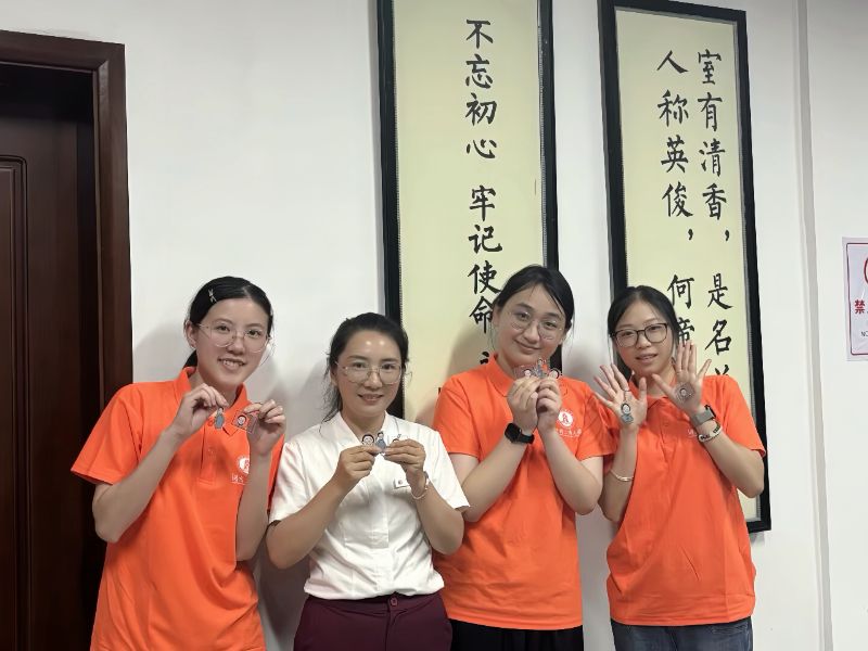 (图为团队成员与讲解员和自制文创周边合影留念 吴泽摄)