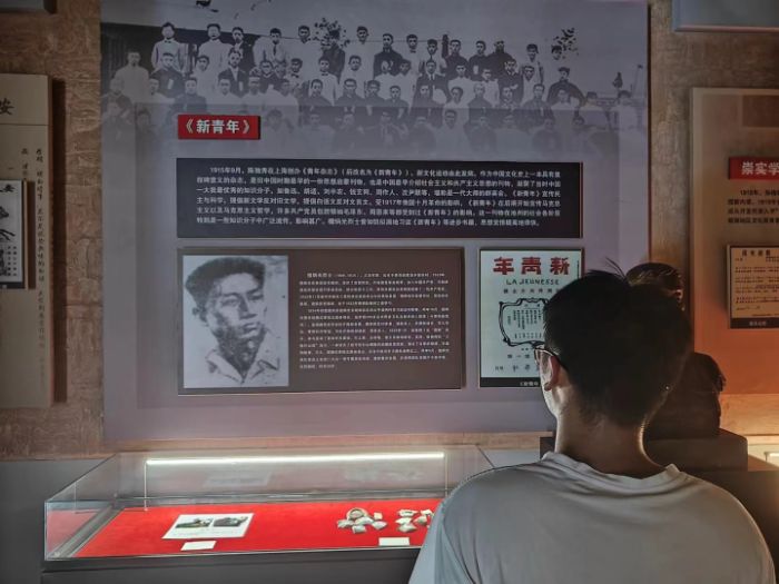 接着志愿者们进入烈士纪念馆内部进行参观,通过人物画像介绍以及文物展示,实践团队了解到檀炳光的英雄事迹,男,1909年出生于贵池县棠溪乡留田村。1929年加入中国共产党。1932年11月,担任中共贵池县委书记,1935年1月,参与发动了留田年关暴动,5月在指挥部队突围中光荣牺牲。而他深受《新青年》等进步书籍的影响,这让志愿者对于新文化运动有了全新的认知与感悟,新文化运动是一次具有深远影响的思想解放运动,它为我们留下了宝贵的精神财富。
