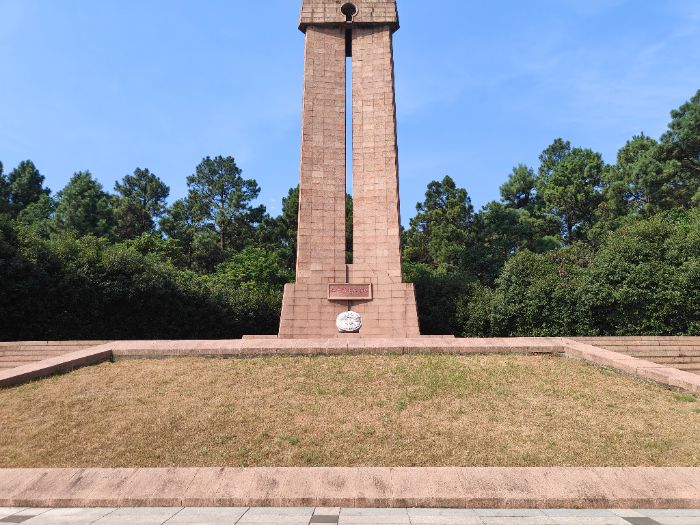 穿过大门,首先映入眼帘的是雄伟的烈士塔,它高28米,寓意着中共贵池特支成立于1928年。塔身由两个三棱体构成,通体采用暗红色的黄岗岩建造,象征着烈士们的鲜血染红了这片热土。站在塔下仰望,心中不禁涌起一股崇高的敬意。