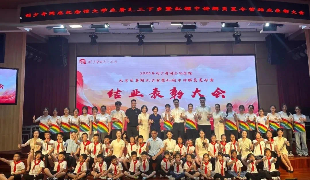 本次“大学生暑期三下乡”实践活动于7月14日圆满落幕。这段从‘背下来’到‘讲出来’、从‘学进去’到‘传出去’的实践历程,不仅是个人的成长蜕变,更是青春力量对红色基因的生动传承。此次活动的成功举办,是刘少奇同志纪念馆深化红色教育资源利用、创新青年思政教育模式的有益探索,为大学生提供了沉浸式学习、专业化锻炼、创新性表达的平台,有效提升了新一代青年的历史使命感、社会责任感和实践创新能力,在伟人故里谱写了一曲激昂的青春实践乐章。