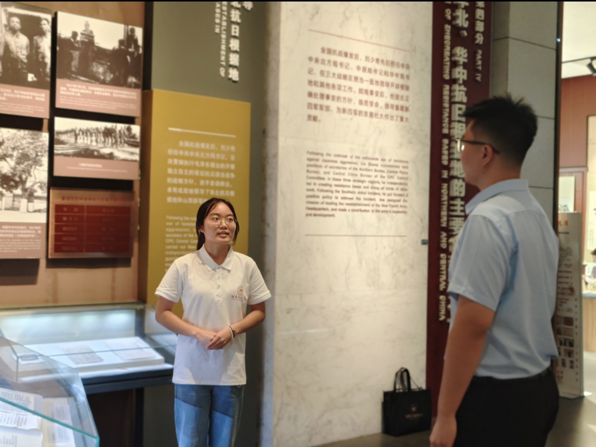 开班仪式后,实践团成员们迅速投入核心技能锤炼——讲解词的精研与背诵,并迎接严格的讲解员验收考核。在纪念馆专业讲解员的指导下,成员们系统学习了刘少奇同志的光辉事迹、重要贡献及纪念馆展陈体系。背诵讲解词成为每日必修课,从宏大的历史脉络到细微的文物故事,要求做到精准无误、情感丰沛。讲解过程不仅是知识的传递,更是与历史的一次深度对话,成员们专业、自信的讲解身影,成为了纪念馆内一道亮丽的青春风景线。