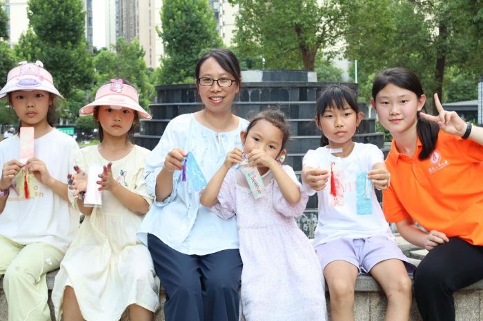 (图为实践团成员与孩子们一同制作的书签 杨康怡摄)