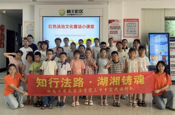 7月26日至28日,湖南工商大学法学院“红法润青苗普法先锋队”赴长沙一师旧址、杨丰社区开展暑期“三下乡”活动,通过红色法治溯源、社区普法实践与新媒体传播三维联动,构建青少年法治教育新模式,推动红色法治文化落地生根。