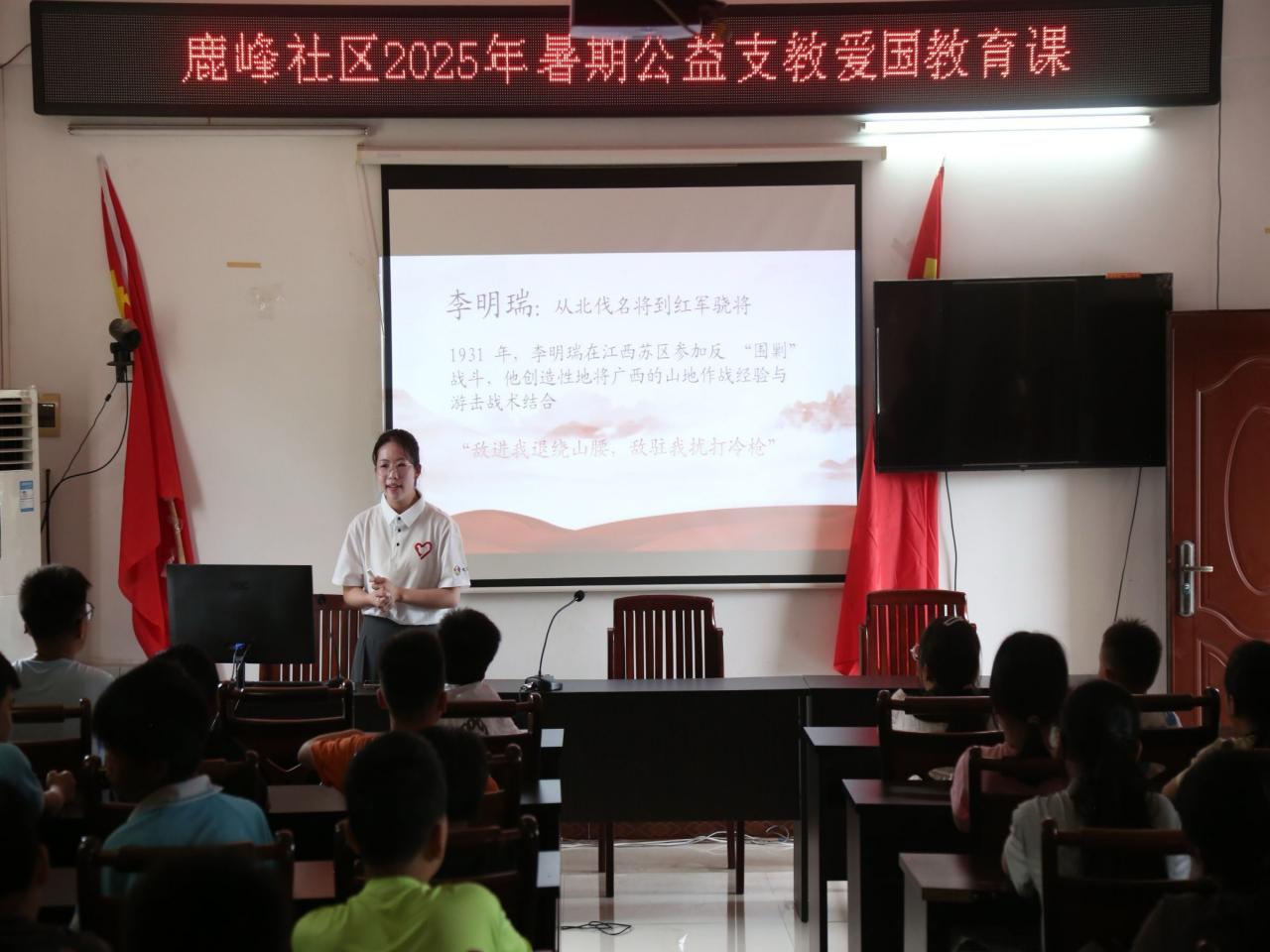 为扩大红色文化影响力,7月16日-18日,团队走进鹿峰社区,面向青少年开展红色故事宣讲活动。团队成员结合调研成果,以生动的语言讲述朱锡昂“壮怀不为风霜改”的革命气节和李明瑞的战斗故事,并通过互动问答、情景分享等形式增强宣讲感染力。现场气氛热烈,青少年踊跃发言,纷纷表示要以革命先辈为榜样,赓续红色血脉,争做时代新人。