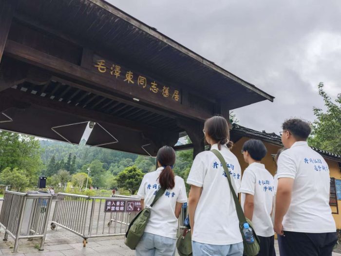 (图为池州学院红土新治逐梦团瞻仰大井毛泽东同志故居)