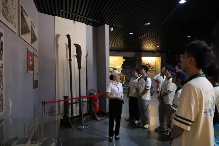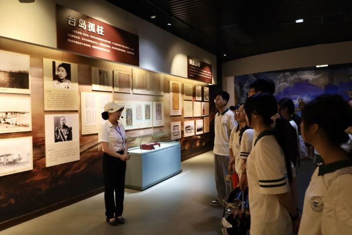图为讲解员为实践团成员讲解刘永福生平轨迹(通讯员陈乐乐摄)