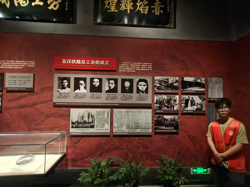 踏入二七纪念堂,仿佛踏入了一条时光回廊,历史的气息弥漫在每一寸空间。陈列架上,泛黄的史料、带着岁月痕迹的珍贵文物,如同拼图碎片,将众人的思绪缓缓拉回 1923 年那段波澜壮阔的时光。在“京汉铁路总工会的成立”展区,黑白照片与详实的文字记录,清晰勾勒出工会筹备、组建过程中的艰辛与波折。从秘密召集工人代表商议,到克服重重阻力正式成立总工会,每一个步骤、每一次努力,都展现出早期工人运动先驱们敢为人先的勇气与执着追求正义的决心。成员们驻足凝视,试图透过这些静态的史料,还原当年先驱们奔走呼吁、为工人权益奋斗的鲜活场景,感受他们在黑暗环境中点燃希望火种的坚定信念。