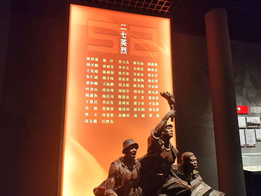 图 2:“二七英烈” 展示区的名字与雕塑。