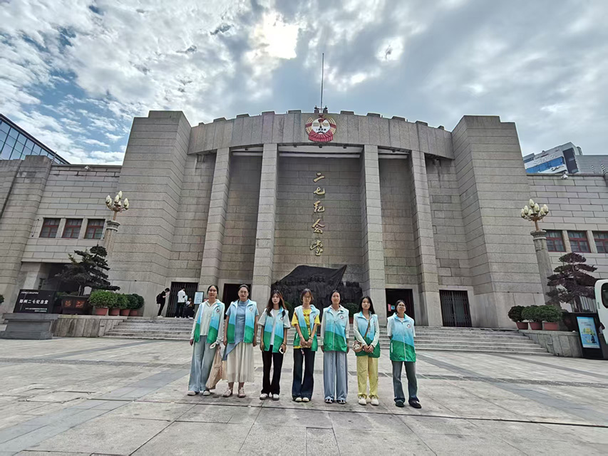 2025年7 月 16日 ,阳光洒在城市的街道上,践行团成员们怀揣着崇敬与期待,踏上了红色寻访之旅。当二七纪念堂巍峨的建筑映入眼帘,厚重的历史感瞬间扑面而来。这座历经岁月洗礼的建筑,静静伫立在城市一隅,无声诉说着往昔的热血故事。成员们身着统一志愿服装,在纪念堂前整齐列队,目光坚定地望向这座承载历史的建筑,一场与历史对话的旅程正式开启。