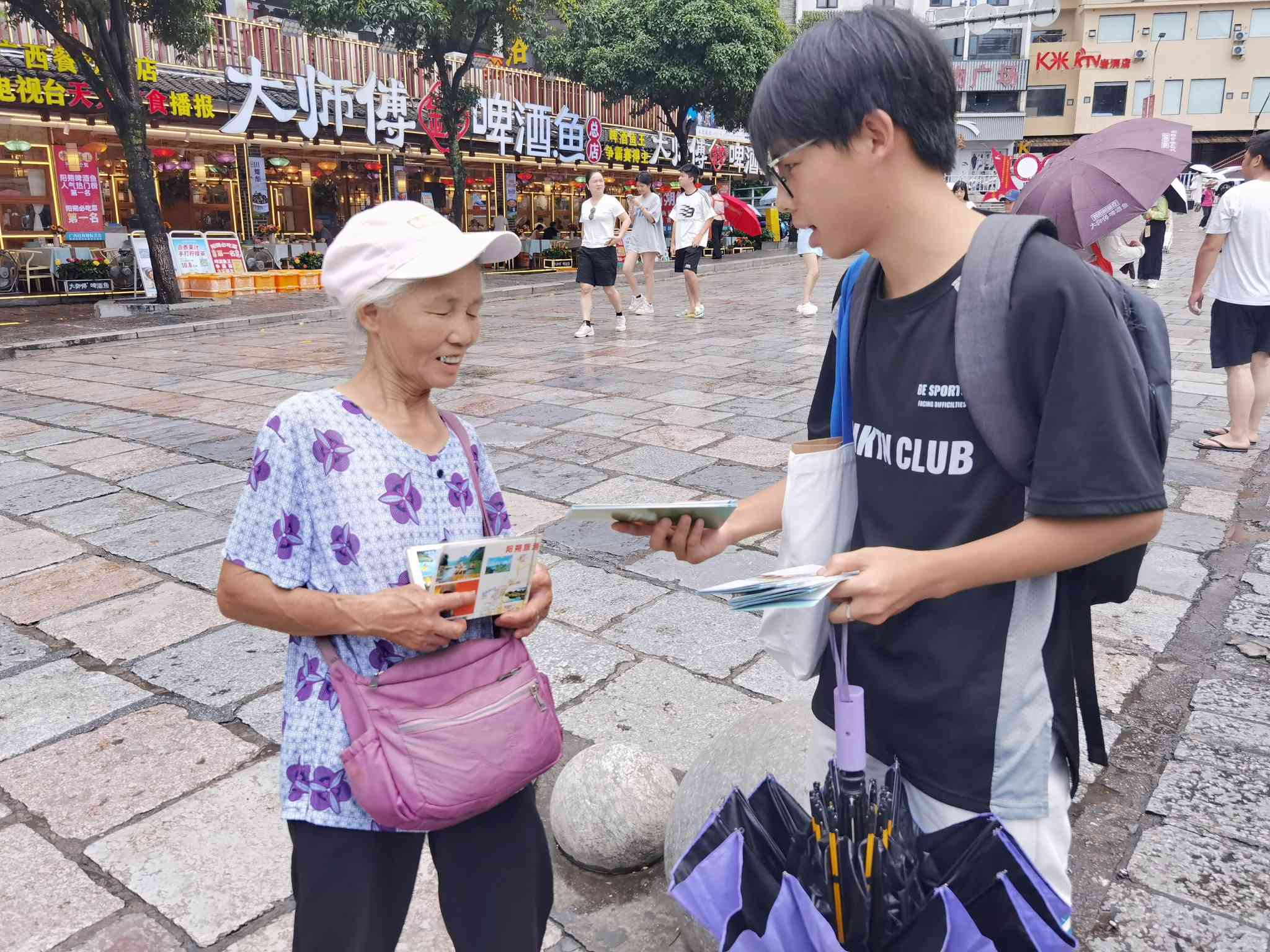 阳朔县:攀岩运动中的推普实践 7月23日,调研团队赴桂林市阳朔攀岩馆,向前台工作人员调研了当地攀岩体育产业发展、赛事举办等情况,以及推广普通话对助力民族团结的成效。在与场馆工作人员和当地群众的访谈交流中,团队成员着重推介学前儿童学讲普通话,强调加大青壮年劳动力普通话培训力度的重要性。为激发居民对普通话的兴趣,团队还通过发放宣传册、现场讲解等方式开展语言志愿服务,宣传解读国家通用语言文字法律法规和政策。团队观察到,攀岩馆的服务场景天然成为普通话推广的实践场域——前台接待、线路讲解、安全指导等环节,都需要工作人员用清晰的普通话与游客交流。