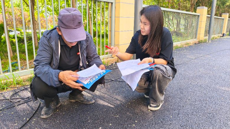 同时,在指导老师的指导下,实践团成员充分发挥个人特长,精心绘制了图文并茂、生动易懂的骚扰电话拦截流程图。宣传现场,队员们手持流程图,用通俗易懂的语言向群众逐一讲解手机设置拦截规则、识别可疑号码等实用技巧,还通过模拟操作演示,手把手帮助老人进行手机设置,通过直观的宣传方式既实用又贴心,切实解决了他们日常生活中饱受骚扰电话困扰的难题,让防扰知识真正入脑入心。