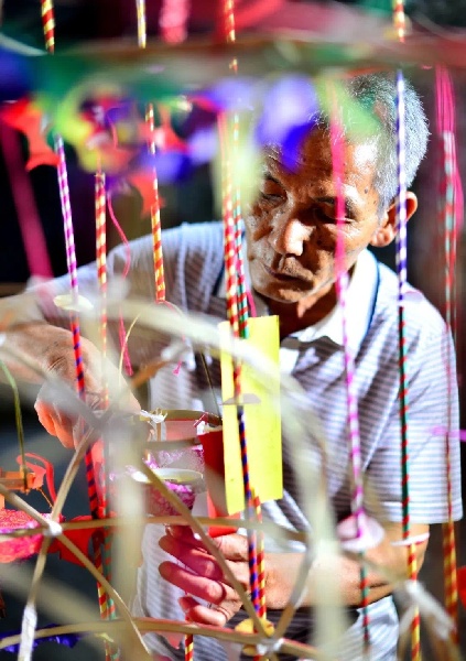 在虎头坪村,省级非物质文化遗产“虎头花灯”吸引了大家的目光。在传承人何廖福师傅的带领下,成员们走进竹林,学习选竹、砍竹的技艺。大家一边认真观摩,一边用镜头捕捉扎架、糊纸等工艺细节。同时,还详细记录了花灯背后的节庆习俗与象征意义,梳理其传承谱系。