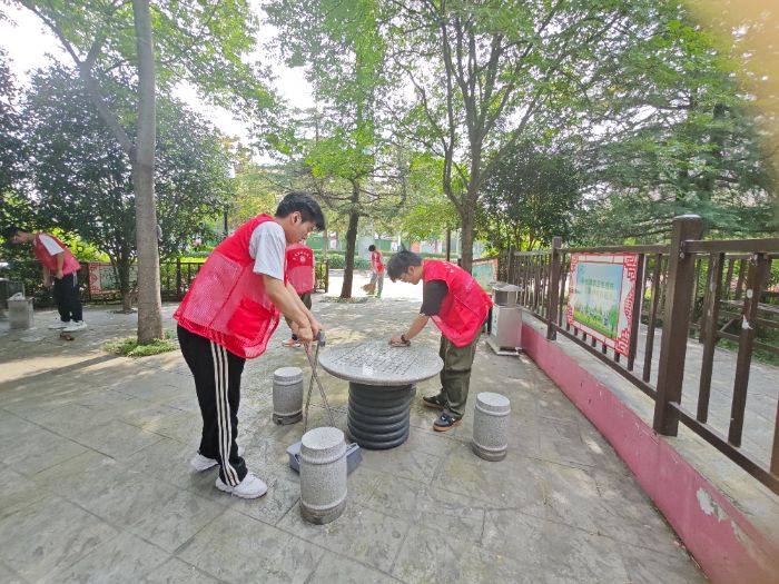 活动当天,滁州学院志愿服务小队身着统一红马甲,在社区广场集合。面对“拥军优属拥政爱民”的社区标语,同学们深知责任在肩。在社区工作人员的引导下,大家迅速分工,投身环境清扫工作。无论是广场上的大型党建主题雕塑周边,还是社区休闲区域的石桌石凳、林荫步道,都能看到同学们忙碌的身影。手持扫帚、夹子等工具,他们仔细清理烟头、纸屑、落叶,不放过任何卫生死角,让社区环境焕然一新。