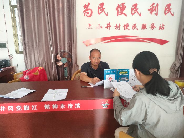 (图为池州学院红土新治逐梦团访谈小井村蓝书记)