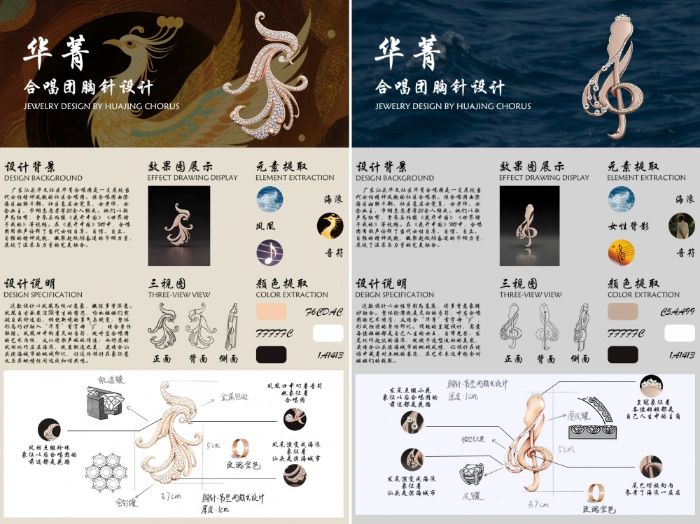 胸针设计终稿展板(张文馨 刘洁瑜 绘)