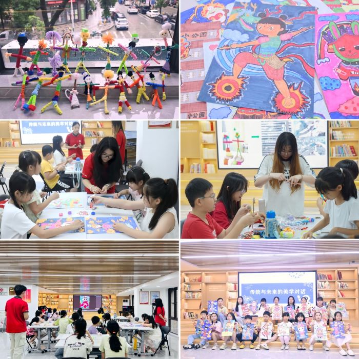 基于前期调研成果,实践团于华文社区组织开展了一系列实践活动。在AI非遗美育课程中,实践团以嵌瓷、英歌舞等非遗项目为核心载体,通过“理论讲解+互动创作+科技赋能”的三维教学模式,生动阐释非遗项目的历史渊源与艺术精髓。课程引导青少年以非遗元素为灵感,设计平面绘画与立体手工制品,并创新转化为钥匙扣、冰箱贴等生活化文创产品,实现“非遗技艺—创意设计—生活应用”的转化链条。课程尾声的AR互动环节,运用人工智能技术将静态作品转化为动态影像,通过虚实融合的沉浸式体验,使非遗文化以科技化、趣味化的形式融入日常生活场景,有效提升了青少年对传统文化的认同感与传承意识。