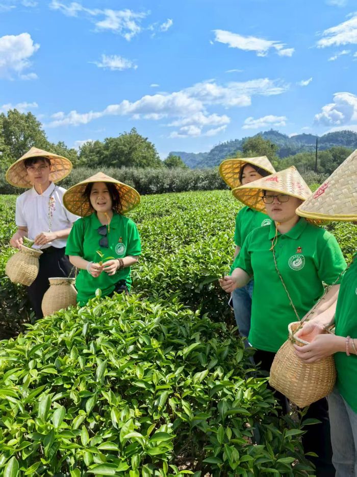 成员们循着领袖足迹,深入学习“茶-豆-绿肥”套种模式:大豆固氮、油菜引益虫、绿肥育土,构成循环生态链。"这是绿水青山就是金山银山的鲜活注脚!"实践队成员们触摸着健康鲜叶,在减少化肥农药的实践中真切体悟"把论文写在田野大地上"的深刻内涵—燕子窠正是写在大地上的生态与经济双赢论文。