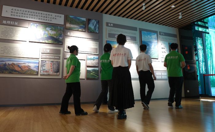 展馆以武夷山茶的历史底蕴、辉煌发展成就和未来规划蓝图为主线,通过丰富的图文史料、科技互动装置和实物成果,生动呈现了茶文化、茶产业、茶科技深度融合的壮阔画卷。兼具文化科普、互动体验、成果展示等多功能的展馆,让实践队成员们深刻理解了“三茶统筹”理念的历史渊源与实践路径,直观感受到科技创新对传统茶产业转型升级的强大驱动力,为这一次实践调研提供了宝贵的理论支撑和宏观视野。